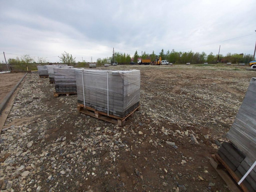 Строители уже начали устройство прогулочной зоны, которая будет иметь красивый вид на Волгу. Они распланировали участок, установили бордюры и подсыпали основу для дорожек.